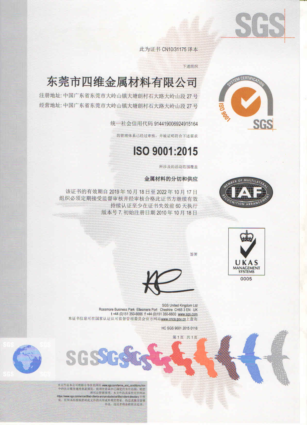 公司早在2010年通过ISO9001质量管理体系认证